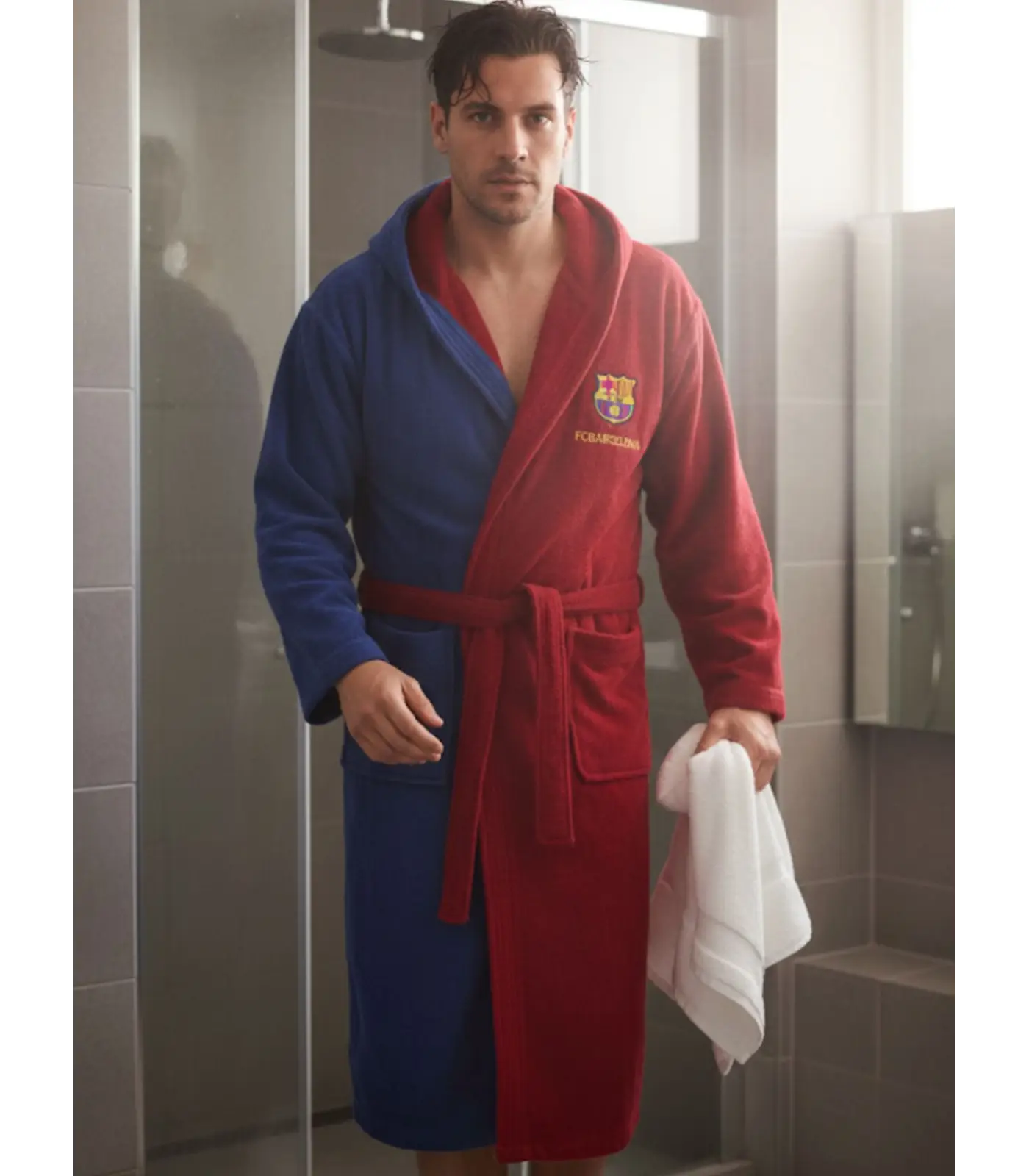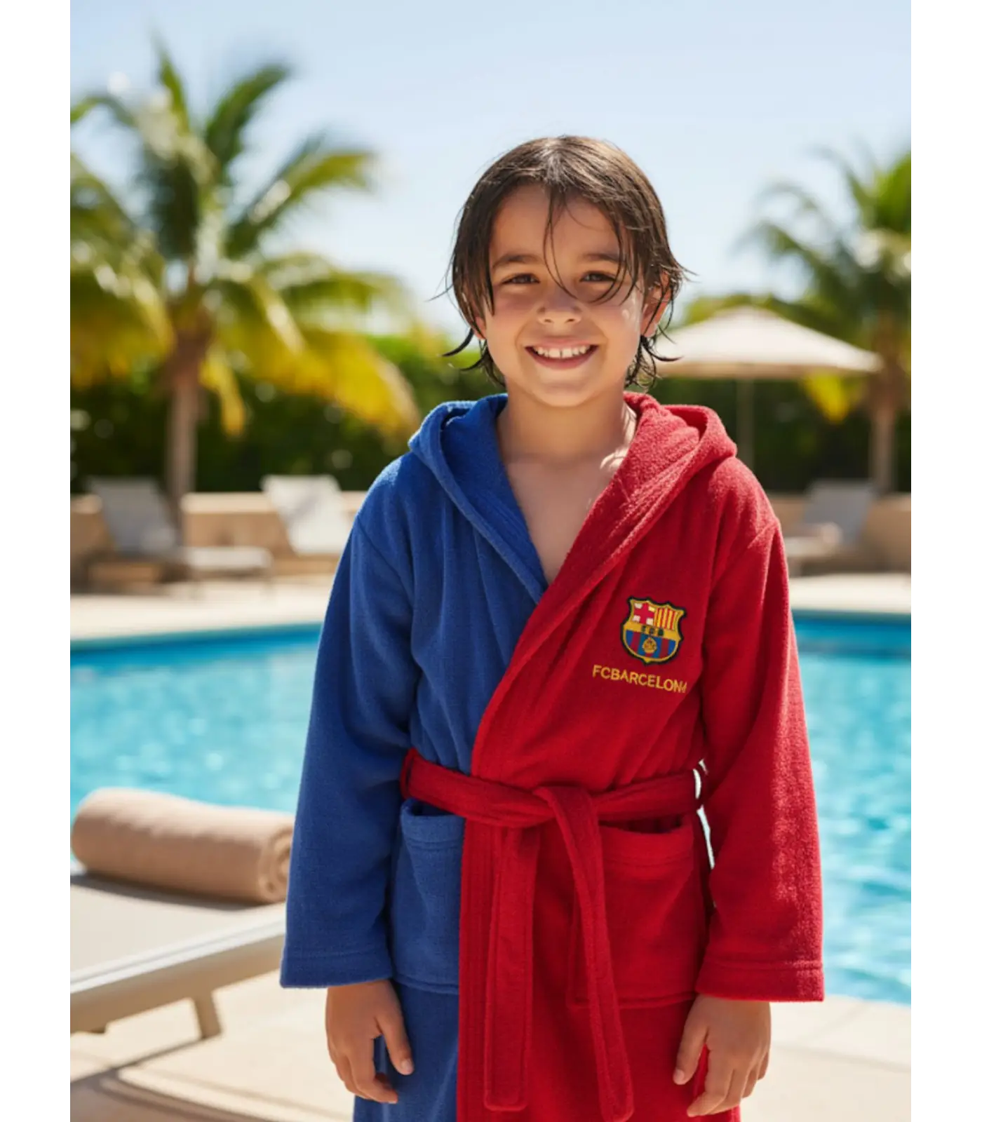 Envuelve tus días en el orgullo blaugrana: albornoz oficial del FC Barcelona, 100% algodón, suave y absorbente. Presentación en caja, ideal para regalar. Disponible en tallas para niño y adulto.