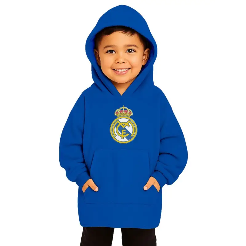Sudadera Oversize del Real Madrid y del Atlético de Madrid. 100% poliéster. Peso aproximado 200 g/m2. Muy suave y cálida. De agradable tacto aterciopleado. Disfruta de la calidez de este producto envolviéndote en él en tu cama o sofá con los colores de tu equipo favorito. Disponible para niño o adulto.