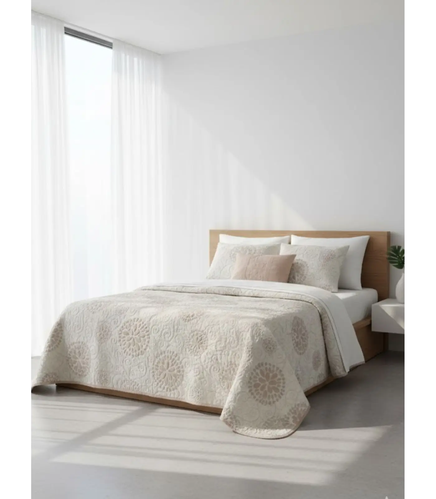 Resistencia Superior (60% Poliéster): Esta proporción garantiza que la colcha sea prácticamente indestructible al uso diario. No encoge, no se deforma y mantiene las medidas originales tras los lavados.
