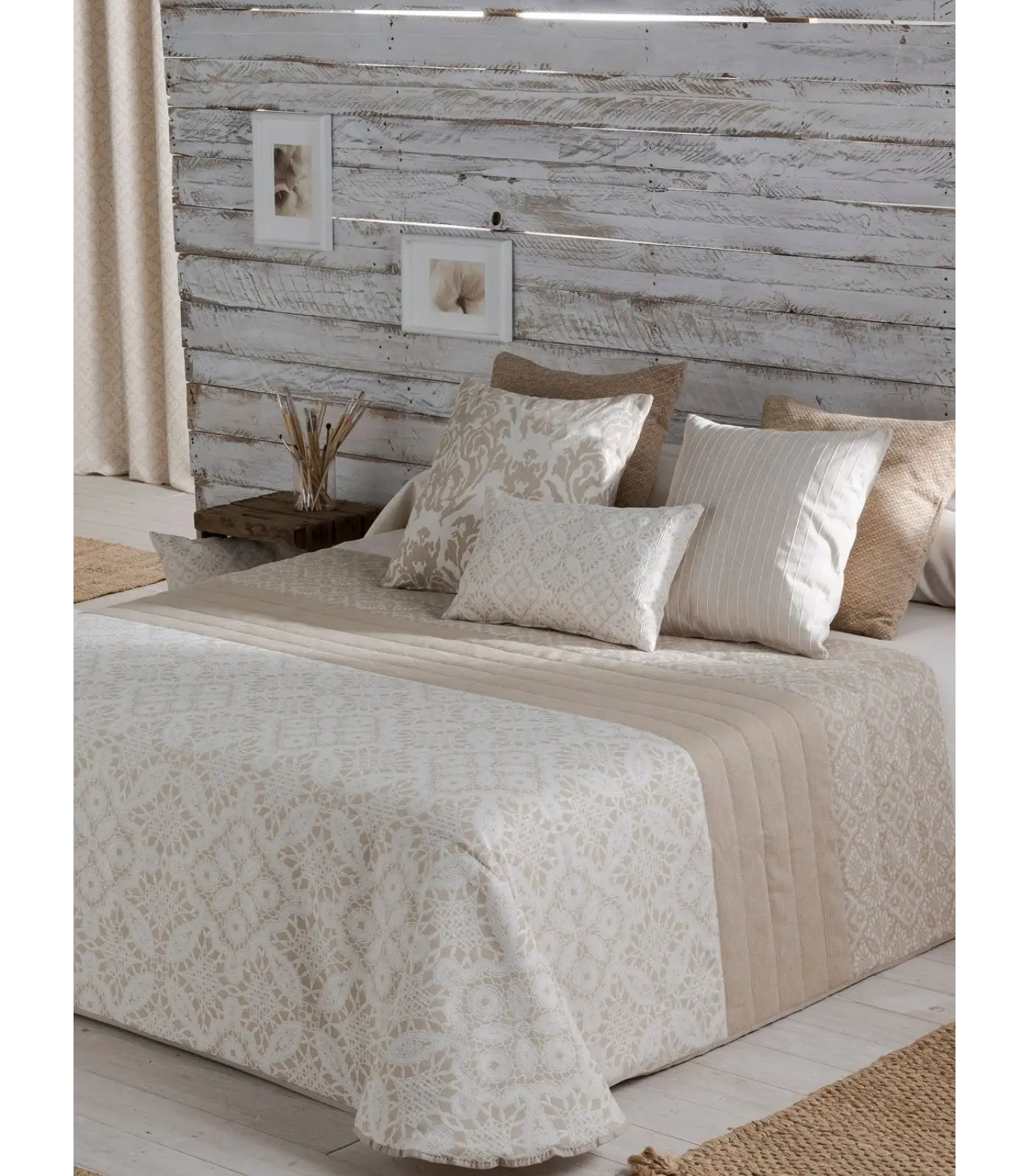 Déjate seducir por la delicadeza de una colcha bouti que cuida cada detalle. Confeccionada con una mezcla equilibrada de poliéster y algodón, esta prenda ofrece una suavidad excepcional y una caída impecable. Su diseño cuenta con puntas redondeadas estratégicamente pensadas para que el tejido no arrastre por el suelo, manteniendo una estética limpia y ordenada. El meticuloso trabajo de su confección en jacquard aporta una dimensión de lujo táctil, mientras que su acolchado de bajo gramaje garantiza un descanso fresco y renovador. La pieza definitiva para una cama siempre perfecta y acogedora.