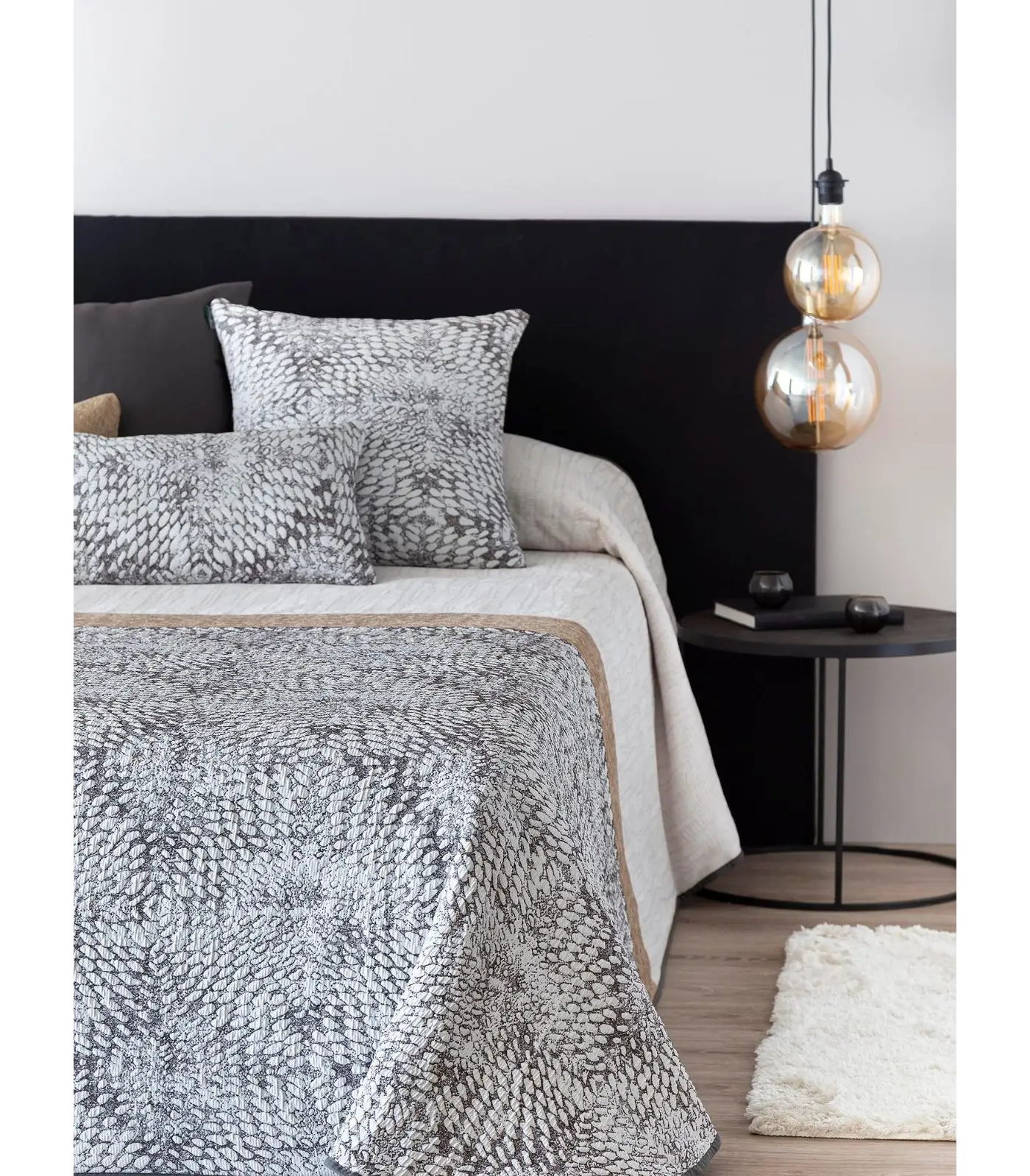 Déjate seducir por la delicadeza de una colcha bouti que cuida cada detalle. Confeccionada con una mezcla equilibrada de poliéster y algodón, esta prenda ofrece una suavidad excepcional y una caída impecable. Su diseño cuenta con puntas redondeadas estratégicamente pensadas para que el tejido no arrastre por el suelo, manteniendo una estética limpia y ordenada. El meticuloso trabajo de su confección en jacquard aporta una dimensión de lujo táctil, mientras que su acolchado de bajo gramaje garantiza un descanso fresco y renovador. La pieza definitiva para una cama siempre perfecta y acogedora.
