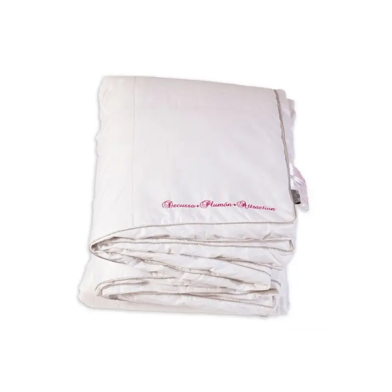 - Edredón nórdico con 210 g/m2 de 100% plumón de oca blanca siberiana y 281 g/m2 de tejido 100% algodón peinado down proof micro-modal tacto seda.
