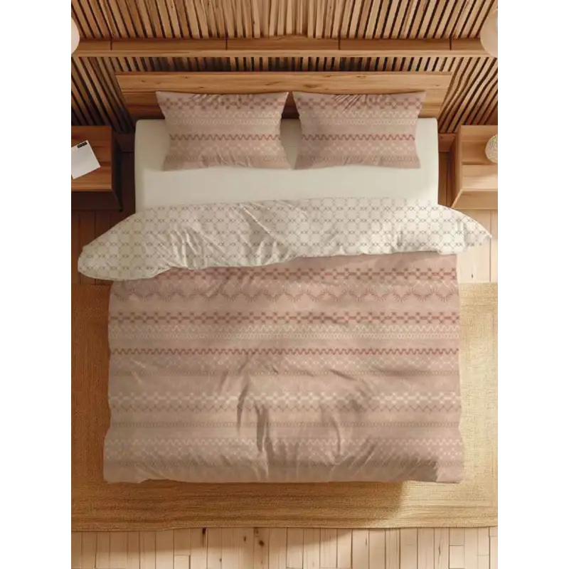 Funda nórdica de dos piezas. Válido para todas las alturas de colchón. Composición 52% poliéster, 48% algodón. Garantía antipeeling, no hace bolas. Tacto suave. Larga duración. No necesita plancha.