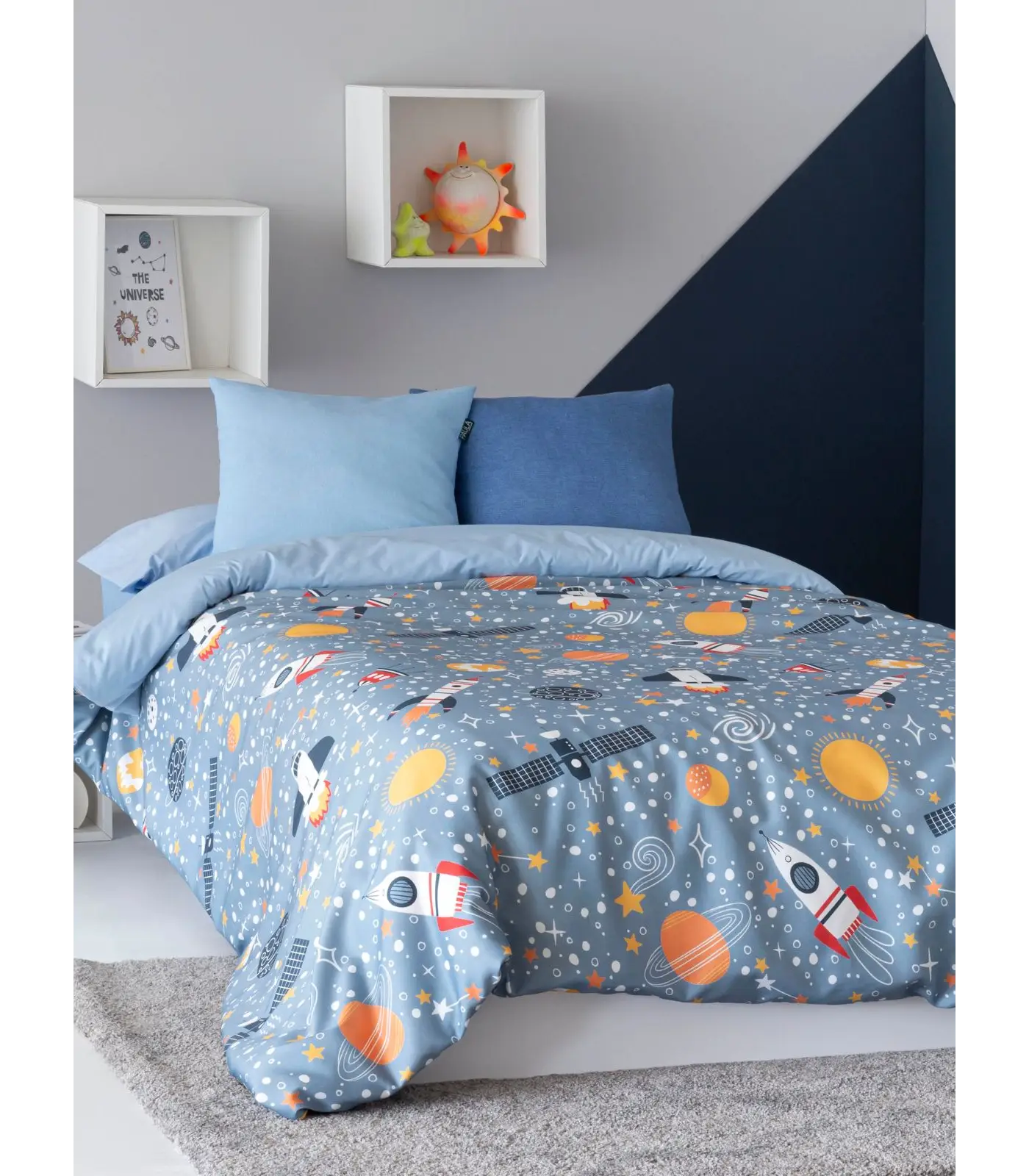 Viste la cama con la fuerza visual del modelo Galaxia, una pieza que destaca por su dibujo continuo y su vibrante estampado color print. Gracias a su mezcla equilibrada de 65% poliéster y 35% algodón, esta funda nórdica ofrece la combinación ideal: la frescura del algodón para un descanso sano y la durabilidad del poliéster para resistir el ritmo diario. Su tejido de alta calidad se arruga mínimamente y ofrece una caída impecable sobre colchones de 90 cm, cubriendo generosamente la cama con sus medidas de 150x270 cm. Es una prenda diseñada para mantener sus colores vivos y su forma intacta, misión tras misión, lavado tras lavado. Confeccionada para ofrecer una suavidad excepcional, esta funda no solo decora, sino que crea un refugio acogedor donde la imaginación de los más pequeños no conoce límites. ¡La aventura espacial comienza al apagar la luz!